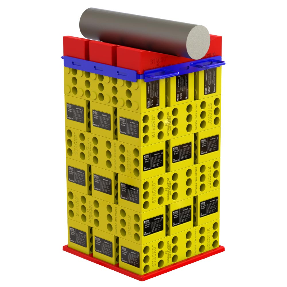 Многоцелевой комплект с верхним стальным основанием и V-образными опорными блоками для поддержания груза округлой формы.