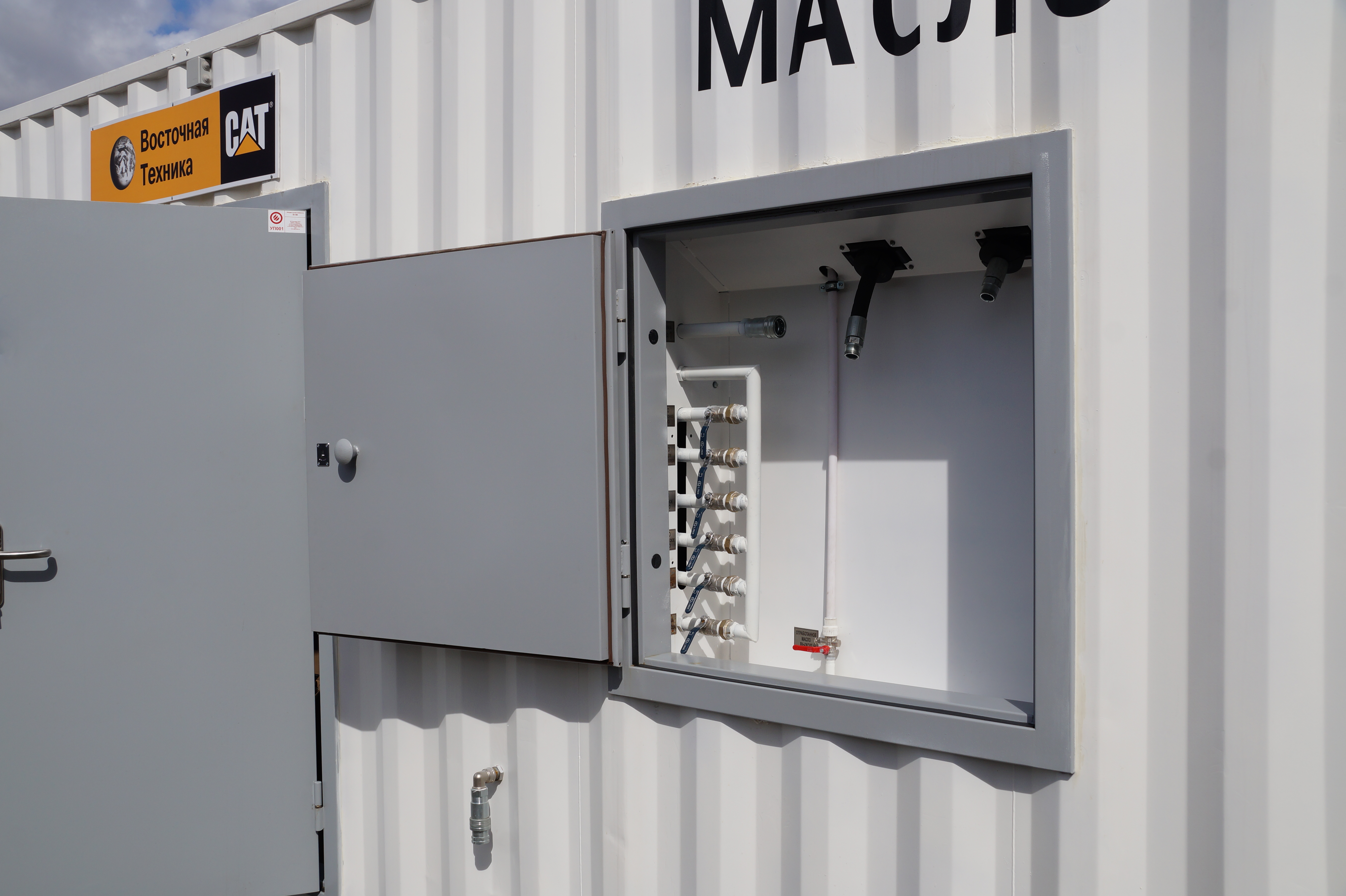 По Заказу официального представителя в России компании Caterpillar была изготовлена мобильная маслораздаточная станция ММК-4 для обслуживания горной техники непосредственно на месте её нахождения в местах открытых разработок. Станция представляет собой подготовленный 40-футовый контейнер High Cube для эксплуатации в суровых климатических условиях с перепадами температур от -30 до +60°С. Контейнер утеплен экструдированным пенополистиролом, для прогрева и поддержания температуры установлены тепловые завесы и инфракрасные потолочные обогреватели.